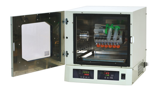 ■The double glass door both heat insulation and visibility. Stores Samples and Reagents on shelves while holds Chromatographic column utilizing the large capacity. Possible for operation of small devices inside.